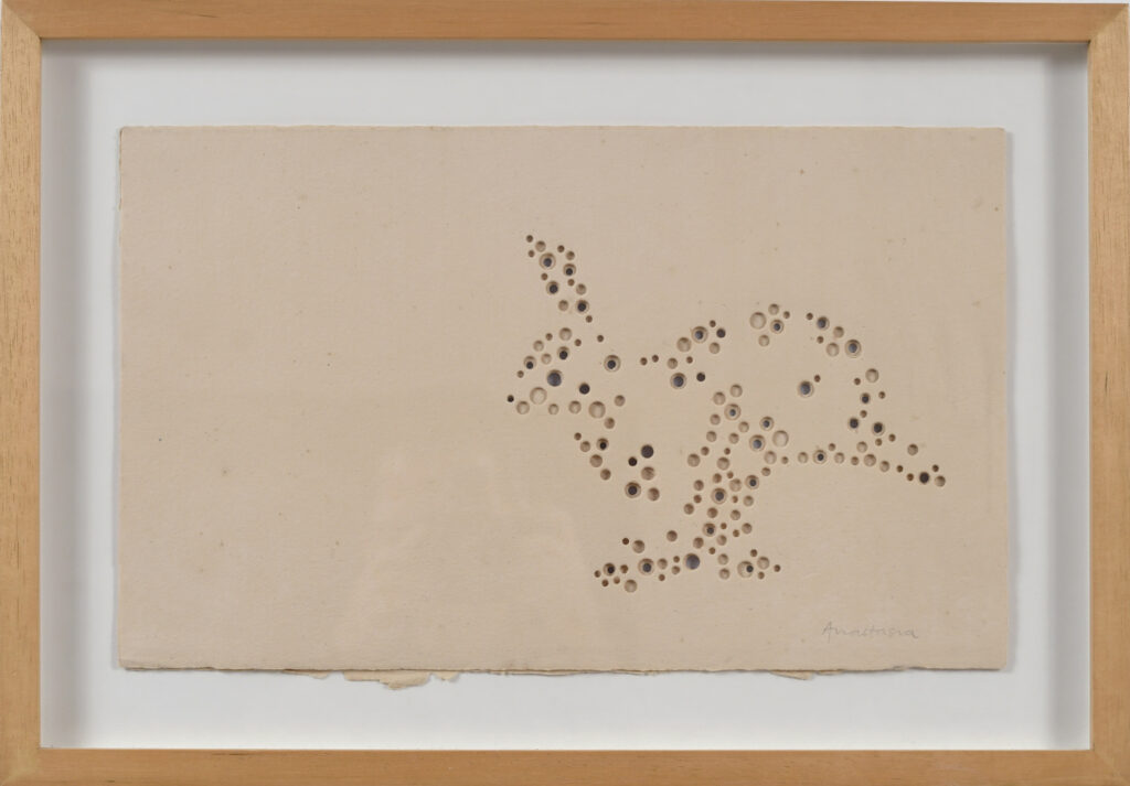 Las obras están realizadas sobre papeles hechos a mano con fibras vegetales y restos del territorio, utilizando técnicas como marcas de agua, calados, perforaciones y dibujo manual. Estas técnicas permiten que algunas liebres se revelan sólo a contraluz, mientras otras aparecen como delicados rastros o siluetas luminosas.