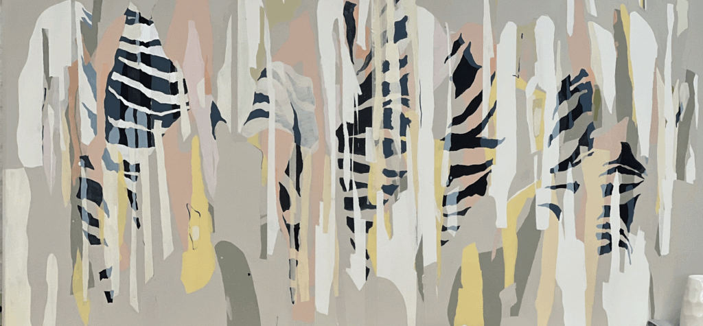 La narrativa visual despliega un viaje a través de capas de colores y formas que se entrelazan y se transforman, con constantes contrastes que reflejan la complejidad humana de reconciliar el pasado y el presente, dando lugar a una nueva expresión de identidad y creatividad.