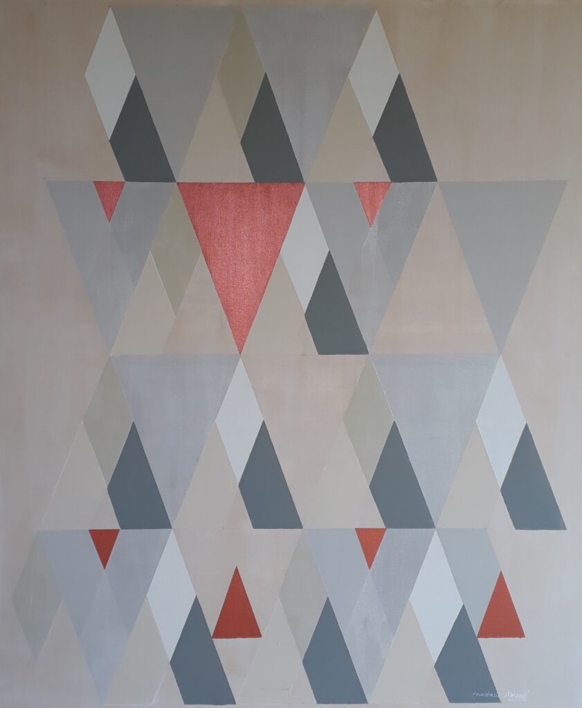 La obra de arte es una exploración artística de estructuras en utilizando el numero de oroy , utilizando una técnica mixta pintura acrílica y pinturas ecologicas en composiciones armonicas respetando el numero de oro en el thanos y direccioalaidades teniendo en cuenta direcciones