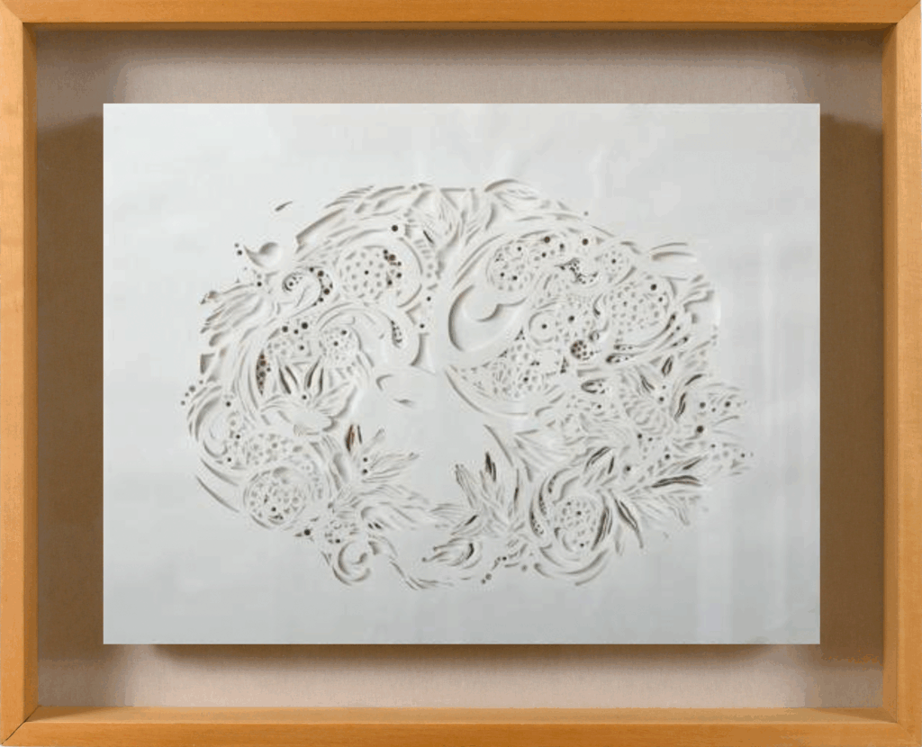 “Redes de Contención”nace del encuentro entre fuerza y tensiones, entre los límites que sostienen y los que contienen. A través del calado en papel, acrílico cristal o madera, el gesto realizado con bisturí o láser abre espacios y vacíos que a la vez construyen imágenes. Lo que falta es tan potente como lo que permanece.