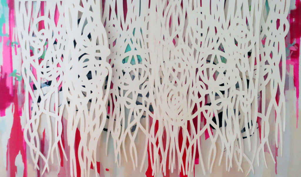 Las capas superpuestas y repetidas generan una narrativa visual donde forma y vacío dialogan en planos positivos y negativos. Allí, el espacio se vuelve imagen, y la imagen se tiñe de delicadeza y sutileza. Cada corte es un gesto: una marca que nombra, que sana, que deja entrar la luz.